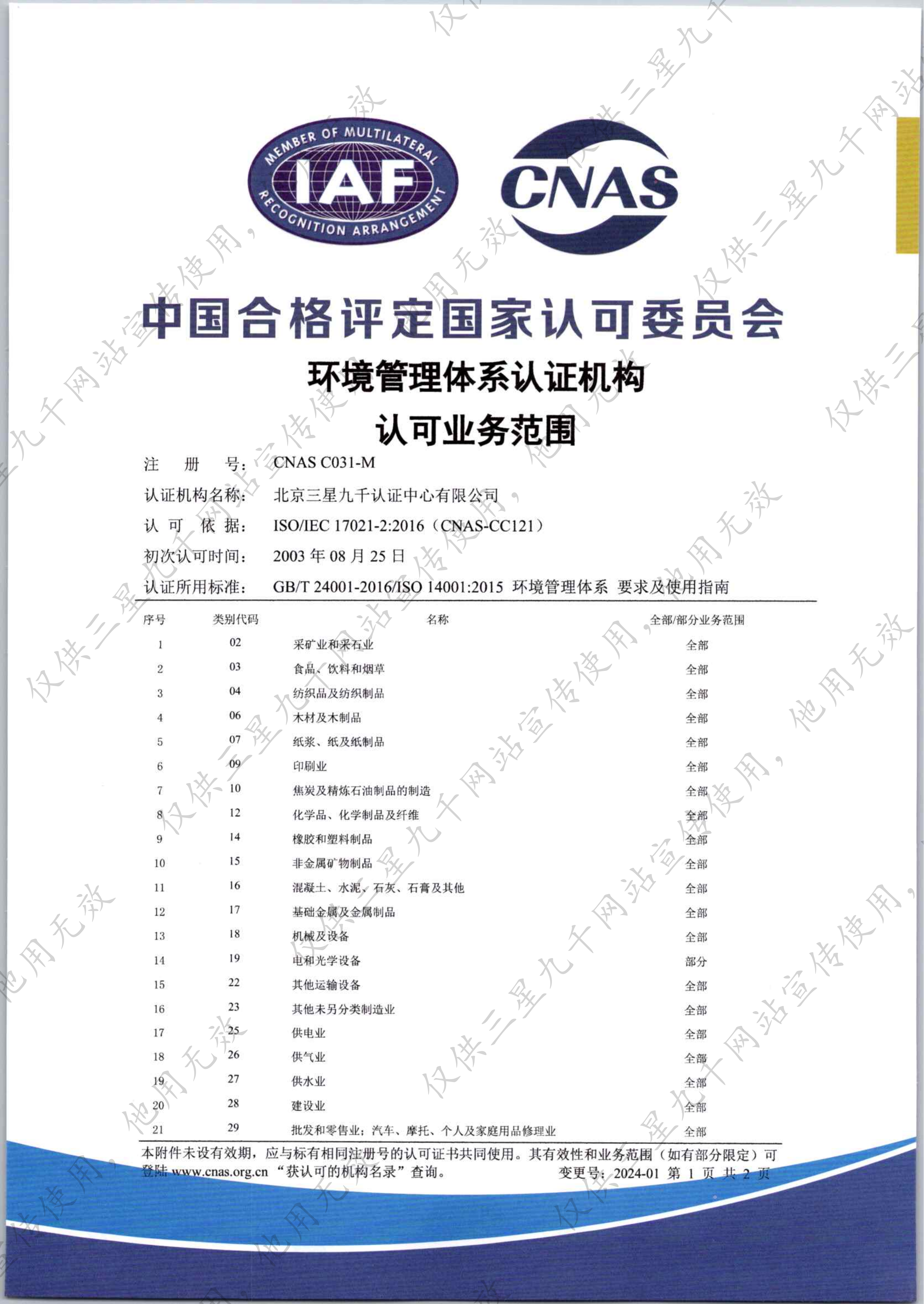 环境管理体系认证机构认可业务范围证书-1