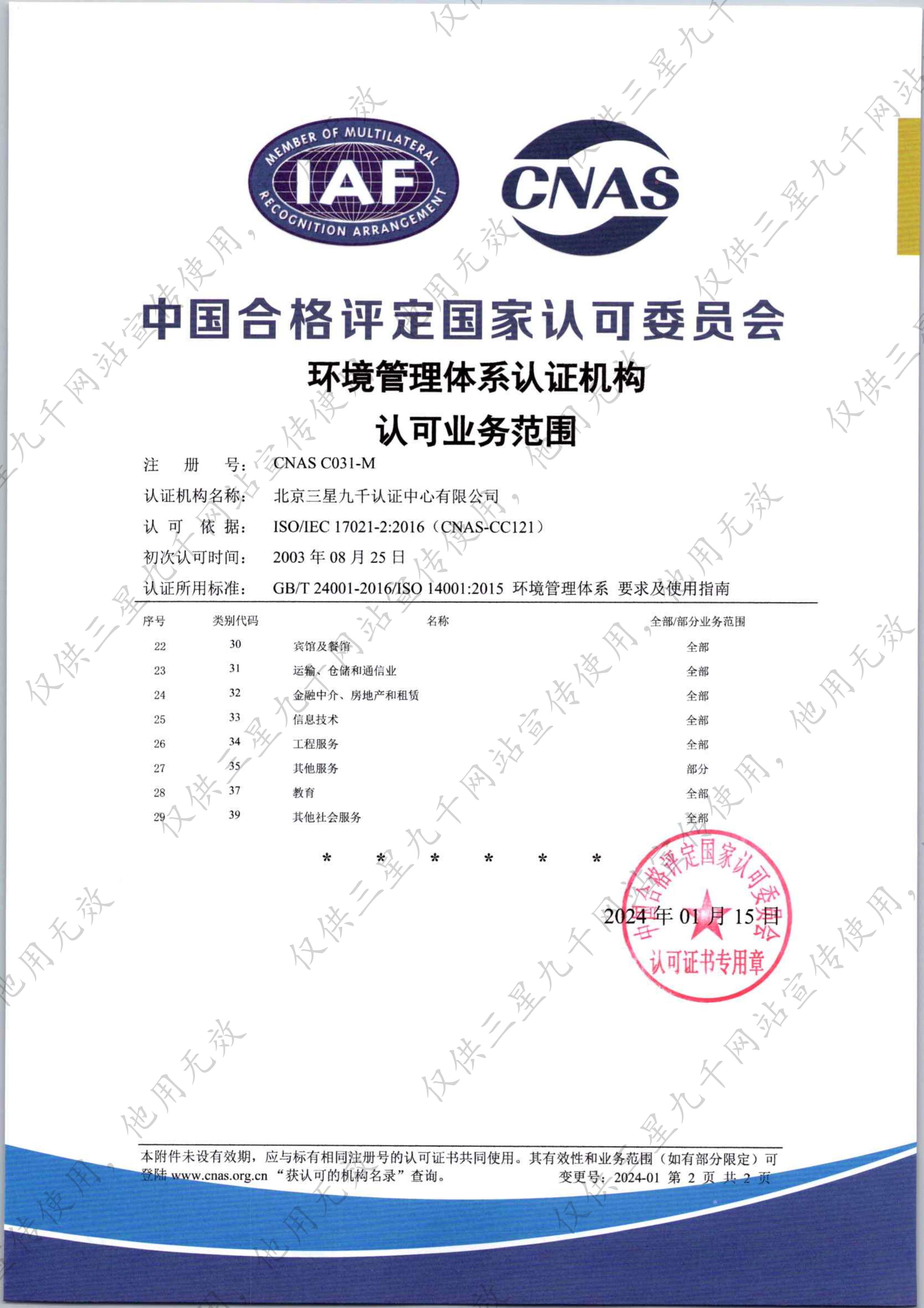 环境管理体系认证机构认可业务范围证书-2