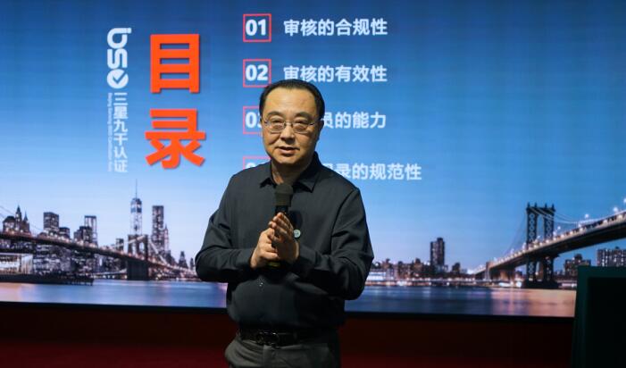 培训期间,中心马志刚副总经理以《新环境下的审核实施》为主题对全体人员进行了培训。马总结合当前行业现状、政府抽查、客户需求和中心品牌等背景,深入讲解了审核的合规性、有效性和规范性要求,并重点对审核人员应具备的适宜能力进行充分讲解。同时向审核员提出了无论外部形势如何变化,审核员都要苦练内功、具有更高的审核深度等要求。