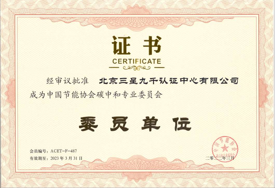 北京三星九千认证中心有限公司于2021年加入了“中国节能协会碳中和专业委员会”,2022年3月31日,三星九千正式升级成为专委会的委员单位,并入选碳中和专委会服务工作组成员,公司总经理马志刚受聘成为中国节能协会碳中和专业委员会委员。
