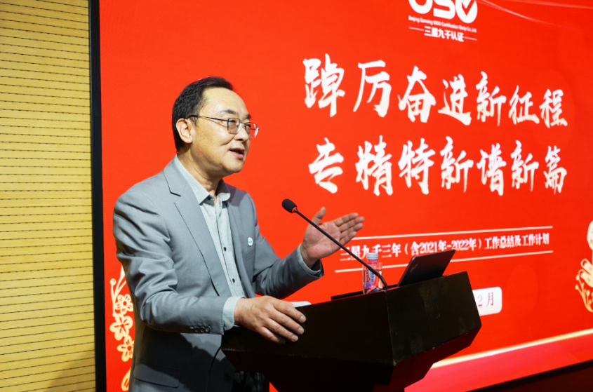 公司总经理马志刚从党建水平、国企改革、国有资产保值增值、认证质量、主营业务等十个方面对上一规划期发展情况进行了回顾,对2021-2022年经营收入、业务发展、重点工作完成情况进行了总结,分析并指出当前公司在人力资源、业务发展、创新成果转化等方面存在的问题,要求大家采取有效措施,切实加以解决。