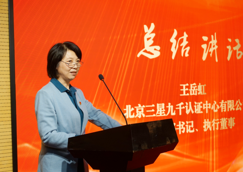 公司党支部书记、执行董事王岳虹代表公司党支部、出资方,向辛勤工作的全体员工、各分支机构人员致以诚挚的祝福和问候。她感慨表示:自己与公司相伴发展19年,亲历了公司由单体系到目前多体系的发展历程。目前公司资产和队伍规模不断壮大、认证质量持续领先、品牌价值不断提升,整体呈现良好的发展态势,已成为行业共同认可的专业认证机构,为公司的发展变化感到由衷的自豪和骄傲。她提出三点期望:希望公司继续加强党支部建设,引领公司业务发展;希望公司经营班子能拓展思路,不断创新,确保2023年设定的目标顺利完成;希望全体员工与公司同呼吸、共命运,以更加饱满的工作热情和更加高昂的精神状态,勇于担当,积极作为。她指出:目前我国石化工业大但不强,我国与他国相比经营效率和经济效率指标还存在差距。我们所从事的认证事业是有价值的,大家要增强信心,不畏大、不气馁,要以认证事业助力我国石化企业管理效率提升,通过形成三星九千的优势产品和高站位的见解,为客户实现一流的经济效益提供支持,为实现石化强国做贡献。
