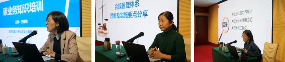 公司管理研究中心王学武主任、技术部副经理王春艳分别对合规管理体系、碳业务等公司大力推广的战略新兴业务要点进行了讲解。人力资源部注册管理员汶倩倩结合最新管理要求,向全体审核员就审核员注册准则的解读与要求进行了讲解,扩充了学员的行业专业知识。