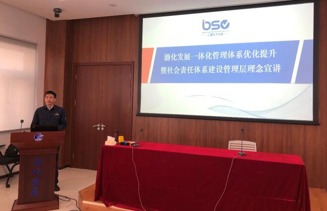 4月19日上午,天津渤化化工发展有限公司(以下简称渤化发展)召开一体化管理体系建设优化提升暨社会责任体系建设管理层理念宣讲会。渤化发展公司领导、各部门、单位负责人及体系建设骨干人员及北京三星九千认证中心有限公司(以下简称三星九千)技术服务项目组成员共88人出席会议。