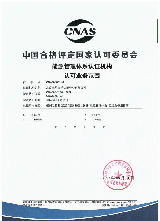 此次扩项成功,既扩大了三星九千的认证业务范围,也标志着三星九千业务能力迈上了新的台阶。本次扩项后,三星九千能源管理体系认证业务范围更为广泛,为更好地满足客户组织在能源管理体系认证方面的认证需求,提供了强有力的技术保障。