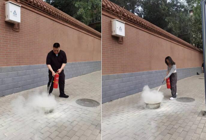 在本次“一警六员”消防演习培训中,马甸桥消防站宣教员首先向参训这详细讲解了消防灭火器和消防水带的正确操作方法。为便于参训者掌握操作要领,宣教员结合灭火器操作口诀要点“一提二拔三握四压”以及消防水带操作口诀要点“一铺二接三开四射”向全体参训者进行了示范演示。