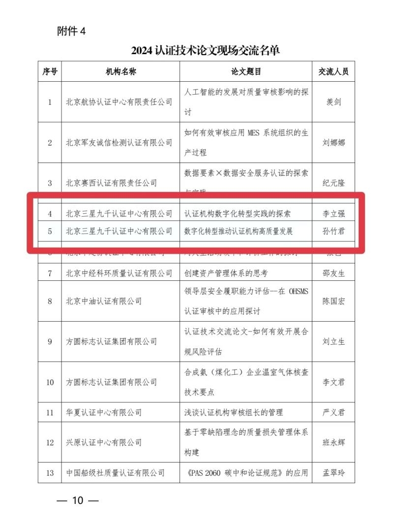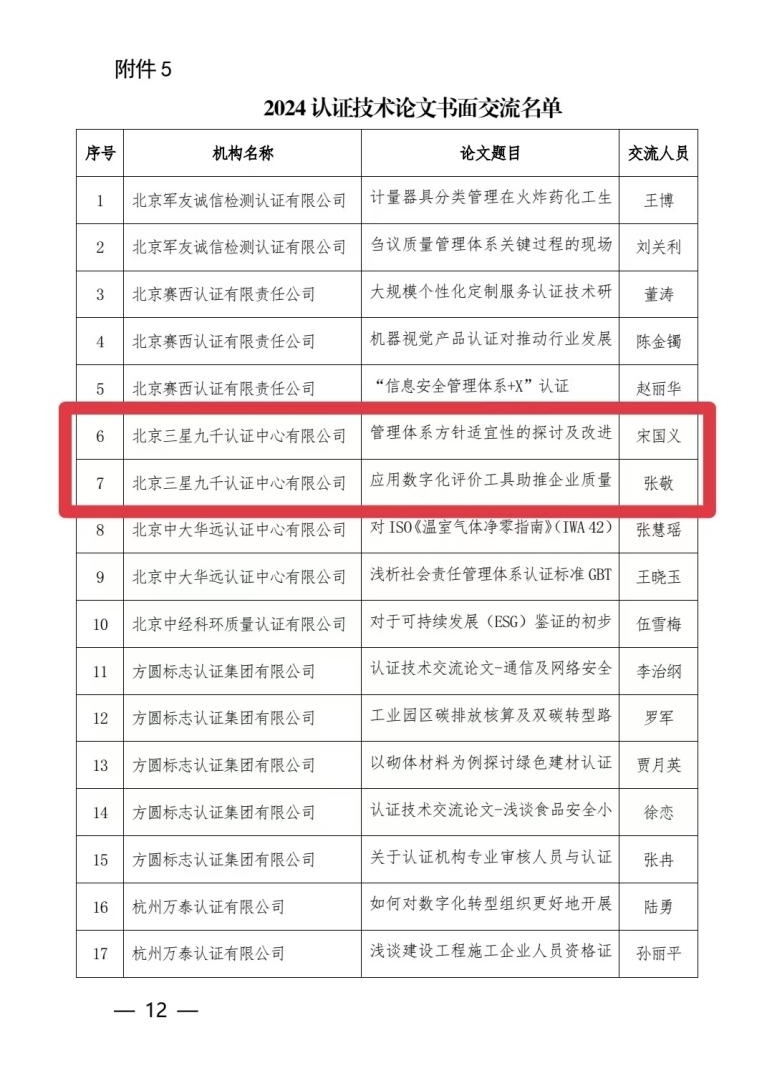 此外,在认证技术论文交流环节,三星九千也表现出色。公司共有2篇论文在现场交流中获得展示,分别是《认证机构数字化转型实践的探索》和《数字化转型推动认证机构高质量发展》。这两篇论文深入探讨了数字化转型对认证机构的影响和推动作用,提出了切实可行的建议和方案,引起了与会专家和同行的广泛关注。