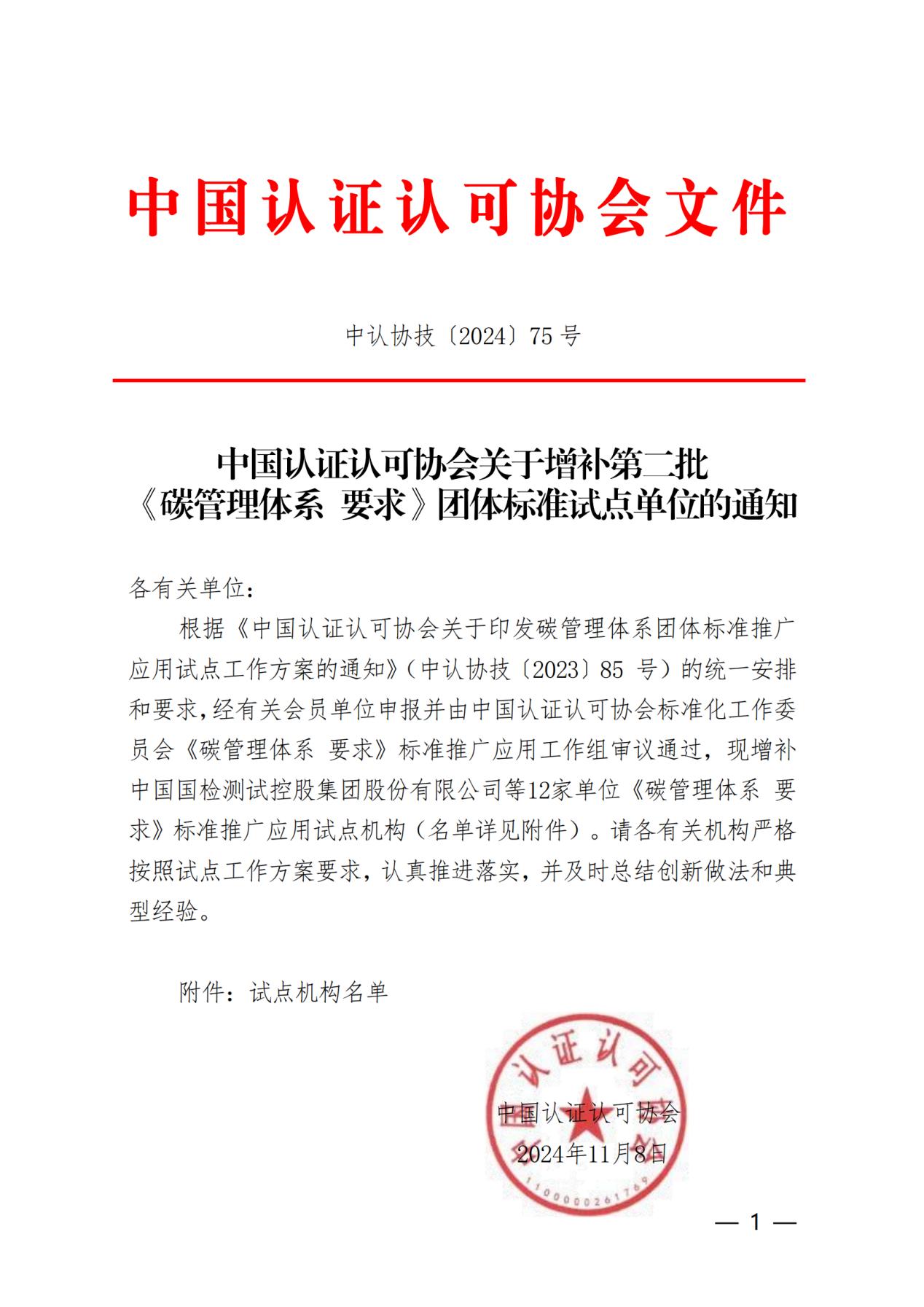 近日,中国认证认可协会发布关于增补第二批《碳管理体系 要求》团体标准试点单位的通知。经申报并由中国认证认可协会标准化工作委员会《碳管理体系 要求》标准推广应用工作组审议通过,北京三星九千认证中心有限公司正式获批《碳管理体系 要求》标准推广应用试点机构和培训机构。