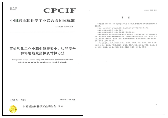 近日,由中国石油和化学工业联合会(石化联合会)提出并归口管理,陶氏化学(中国)投资有限公司牵头,国家能源投资集团有限责任公司、北京三星九千认证中心有限公司(以下简称“三星九千”)等国内外知名企业、院校及第三方机构共同参与编制的团体标准《石油和化工企业职业健康安全、过程安全和环境绩效指标及计算方法》(T/CPCIF 0436-2025)正式发布实施。该标准的发布填补了国内石油和化工行业在HSE(健康、安全、环境)绩效量化评估与对标领域的空白,为行业企业科学评价、持续改进HSE绩效,迈向世界一流水平提供了权威、统一的方法论基础。
