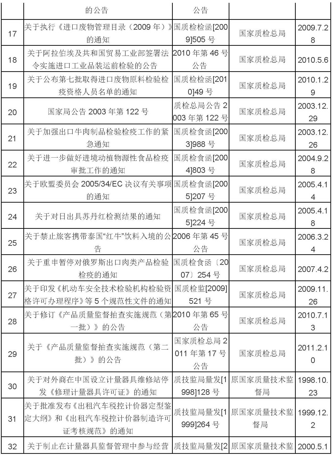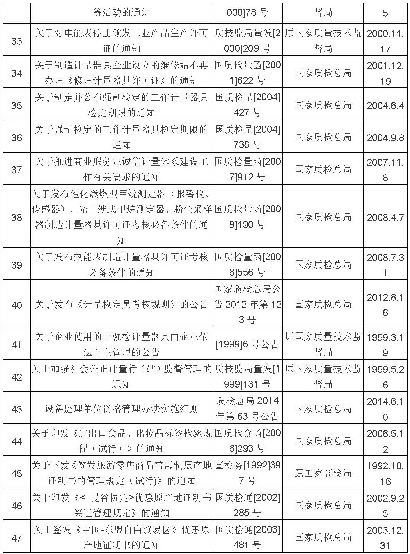 质检总局废止规范性文件目录