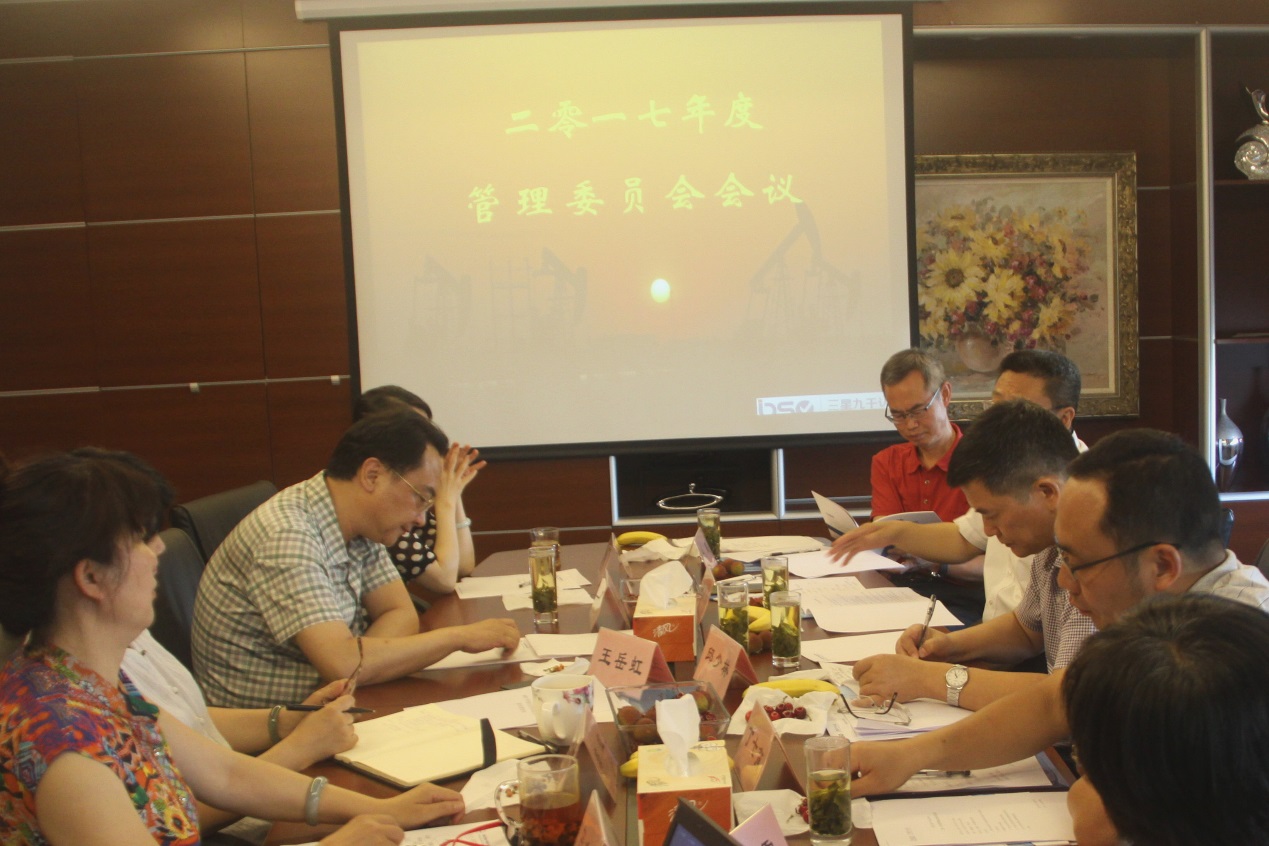 北京三星九千认证中心2017年度管理委员会会议于2017年6月14日在中心会议室顺利召开。管理委员会委员、中心领导及技术部有关人员出席了本次会议。会议由管理委员会主任邱少林主持。