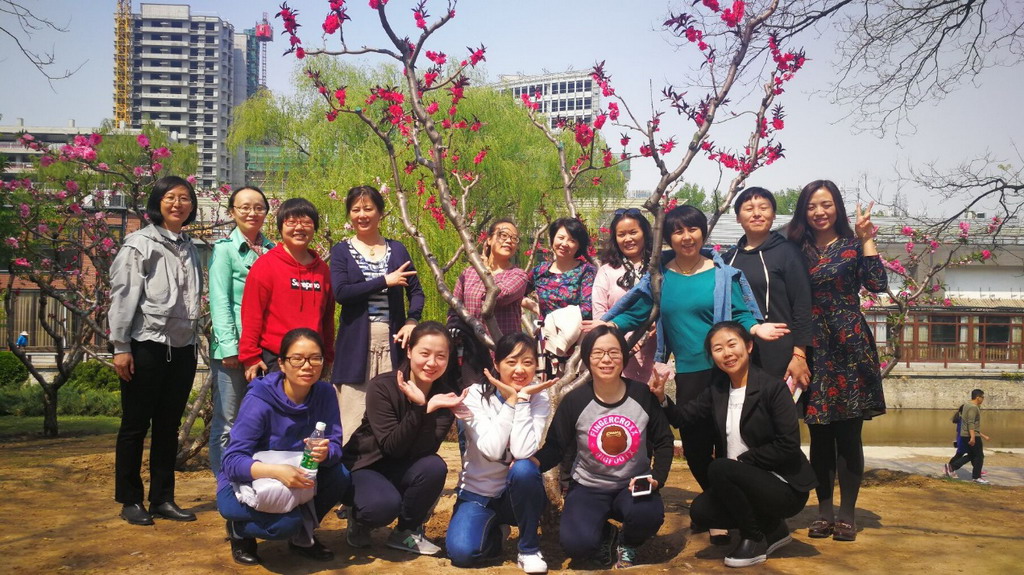 下午1:00,大家沿路元大都遗址公园,欣赏到姹紫嫣红的桃花、迎春花、海棠花。“花开如霞落似雪”