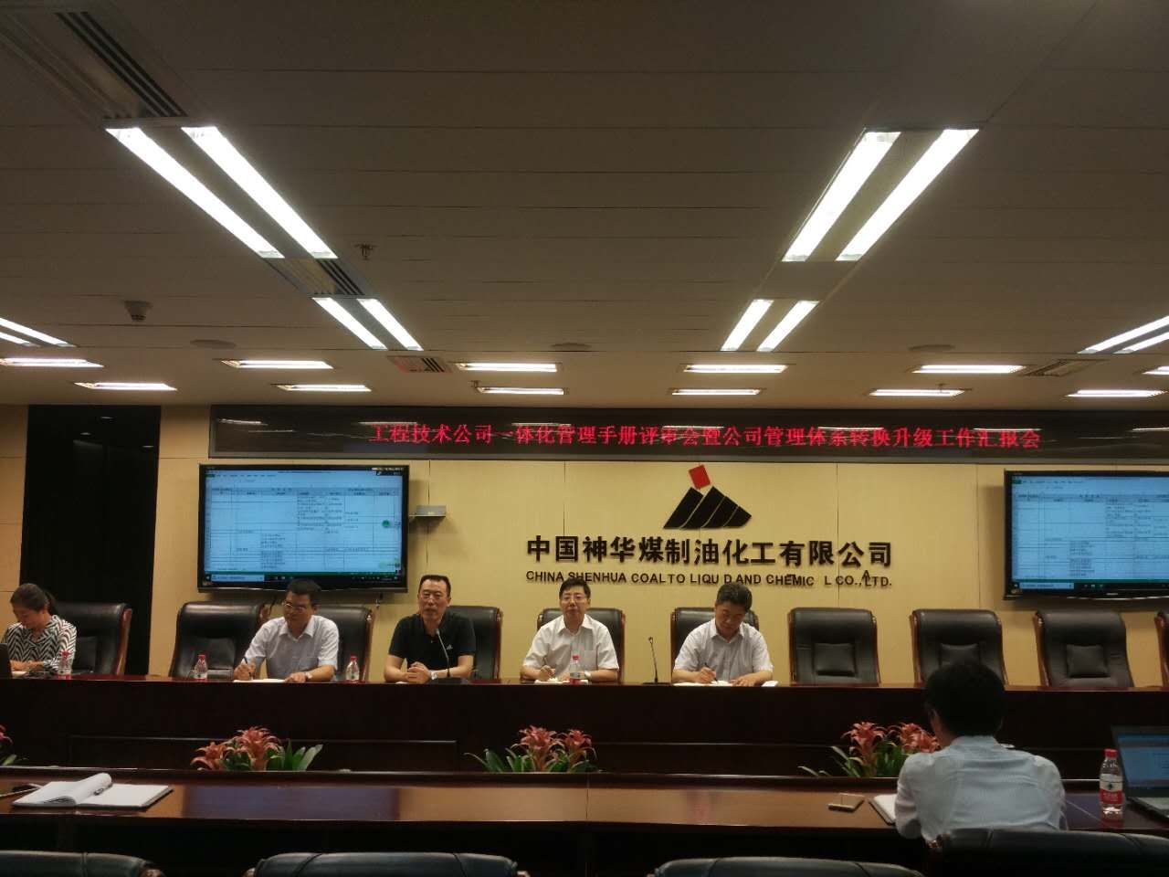 2018年6月22日,神华工程技术有限公司(以下简称“神华工程公司”)安质环部组织召开了“质量、安全、环境管理体系升级转换项目成果汇报会”。会议由安质环部经理惠德建主持,三星九千技术服务组、神华工程公司姜利总经理、赵永年副总经理及各部门、安徽设计院、榆林项目部、包头项目部主要领导共30余人参加了会议。