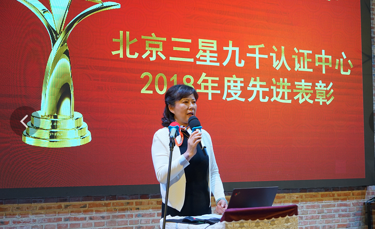 助益社会”的使命和初心,在“一个建立,四个提升”即:建立“三星九千”品牌、提升认证服务质量、提升综合能力、提升创新水平、提升工作效率等方面取得了可喜的成绩;王总强调:在2019年,中心将以三年发展规划为指导,围绕“抓执行、强能力、创品牌、促诚信”十二字工作方针,努力提升服务质量,提升综合能力,提升品牌价值,提升诚信水平。王总同时对一年来辛勤工作的中心全体员工给予了充分肯定、鼓励和新春祝福,并号召大家不忘初心,砥砺前行,为建设三星九千知名品牌多做贡献。