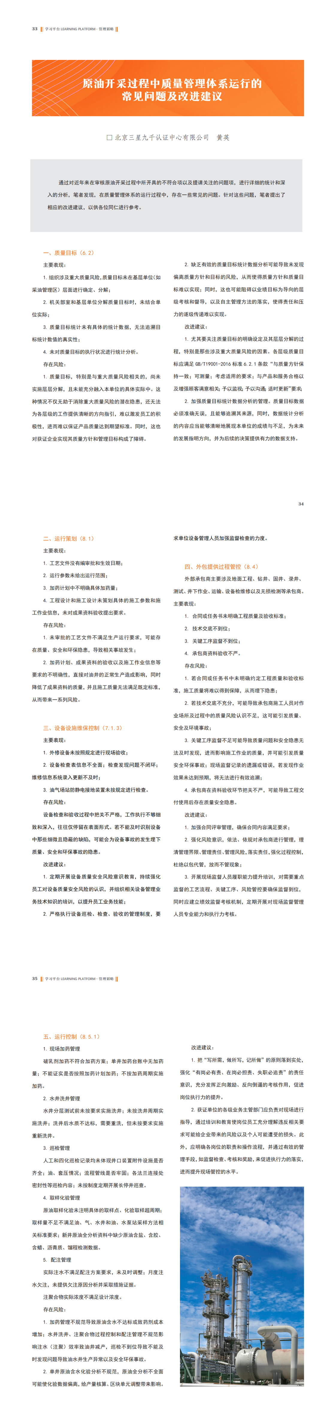 原油开采过程中质量管理体系运行的 常见问题及改进建议