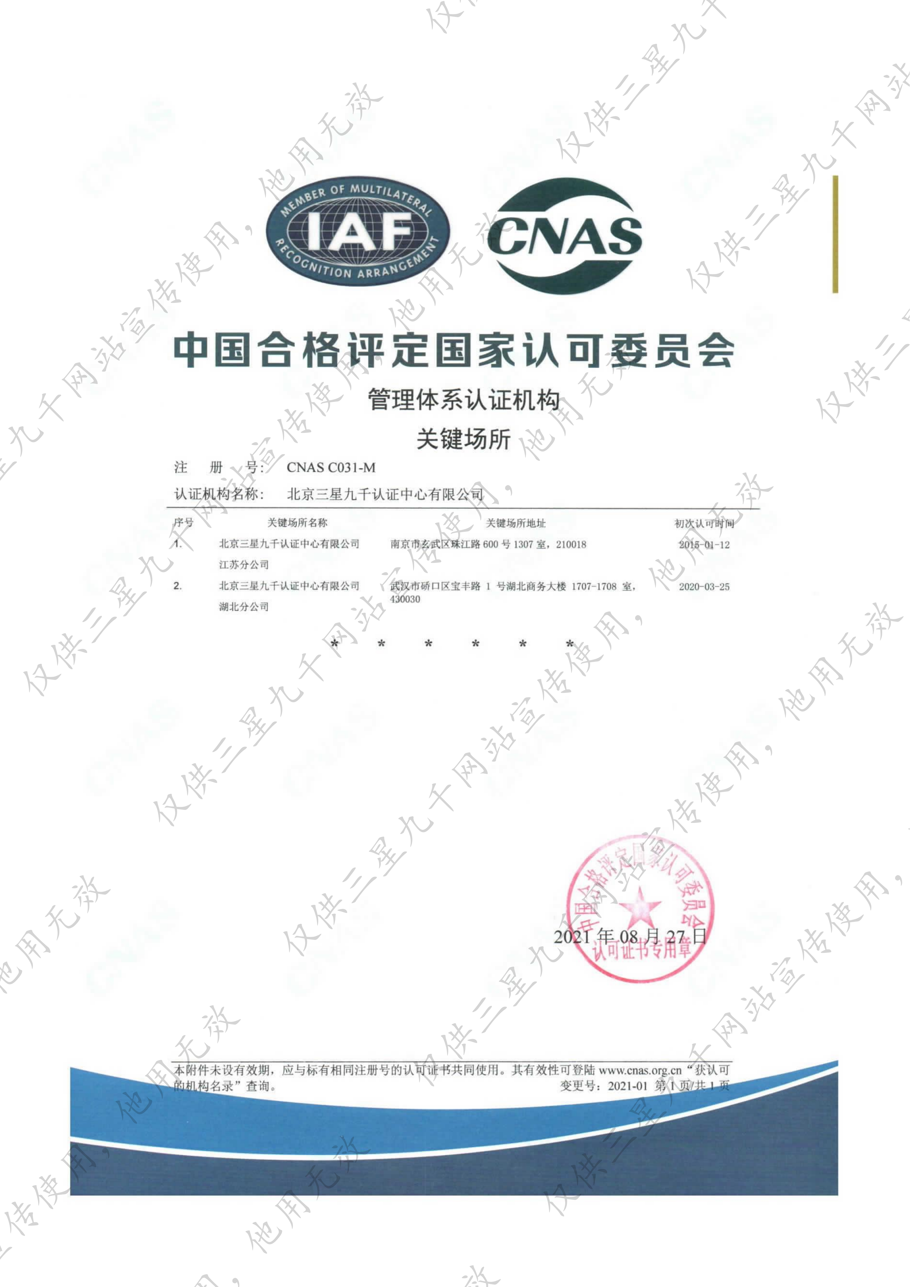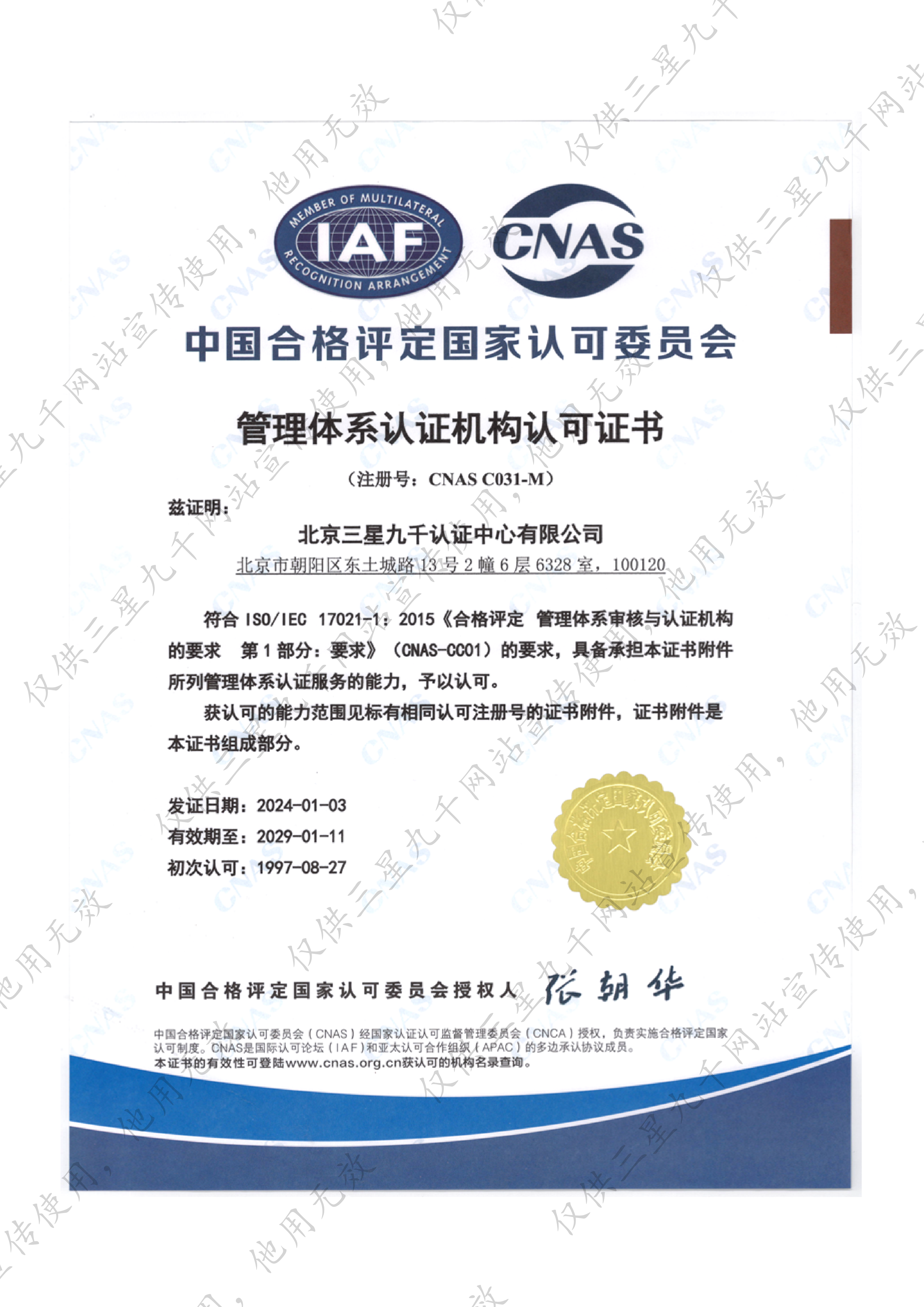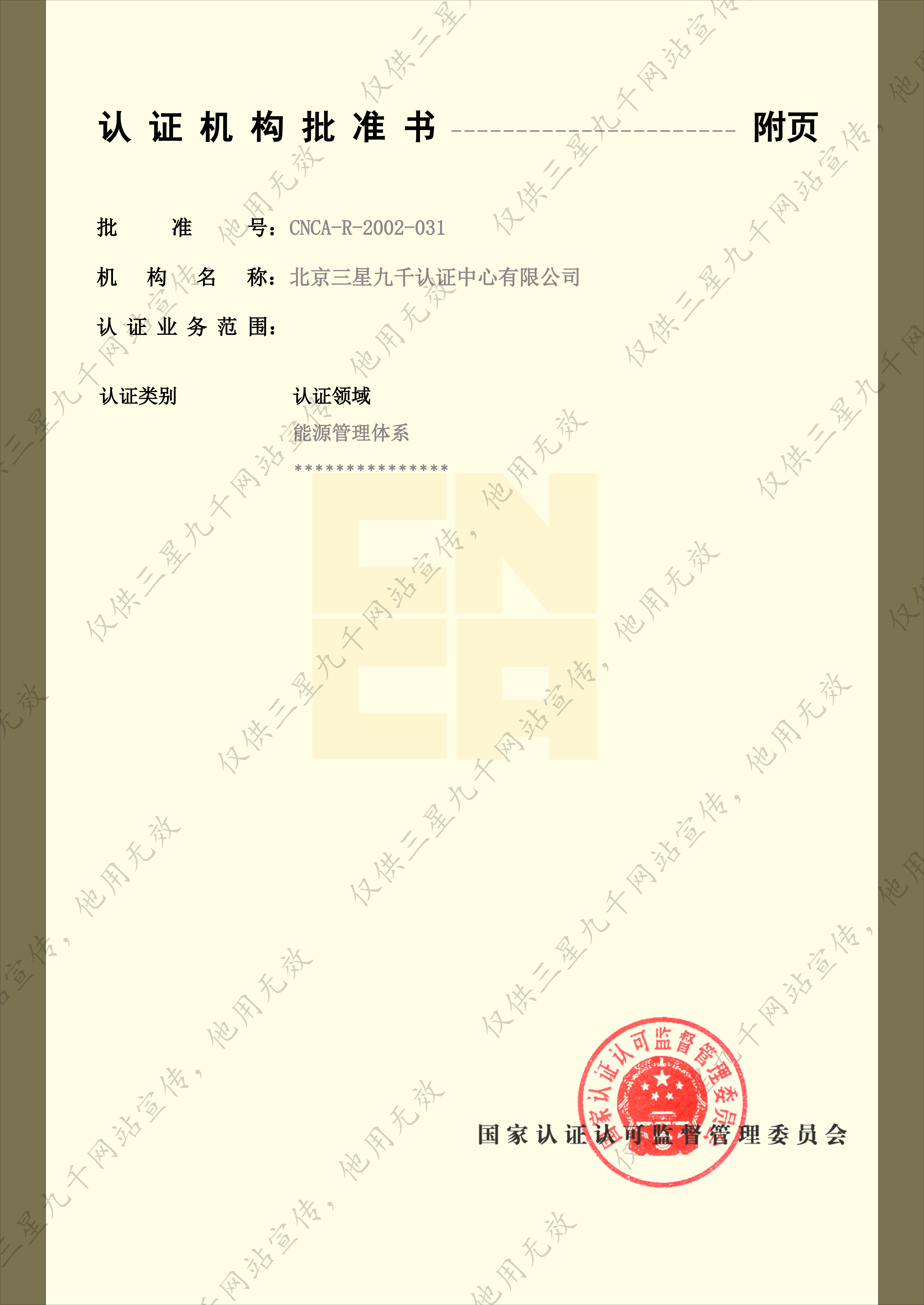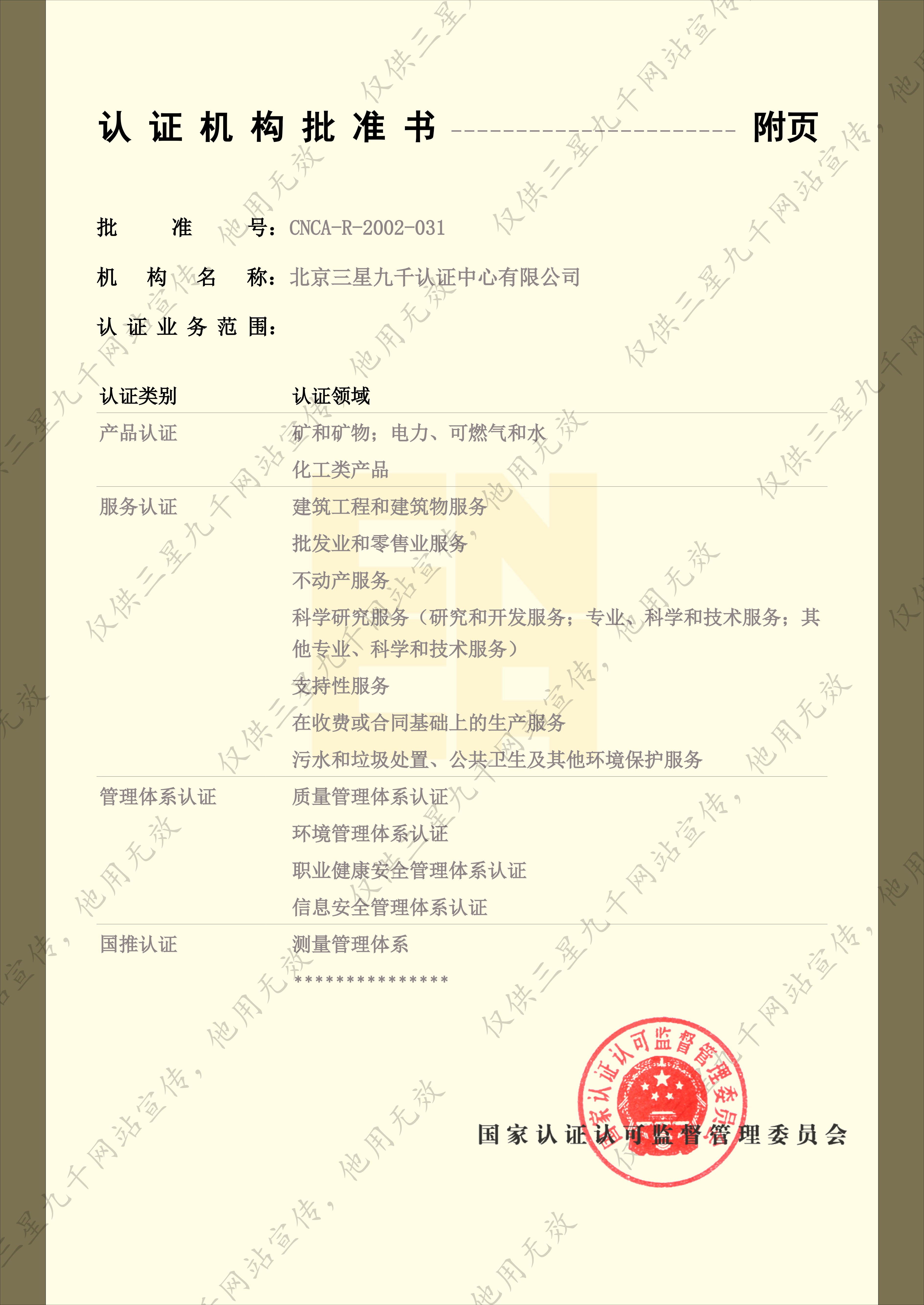 工程建设施工企业质量管理体系认证机构认可业务范围证书