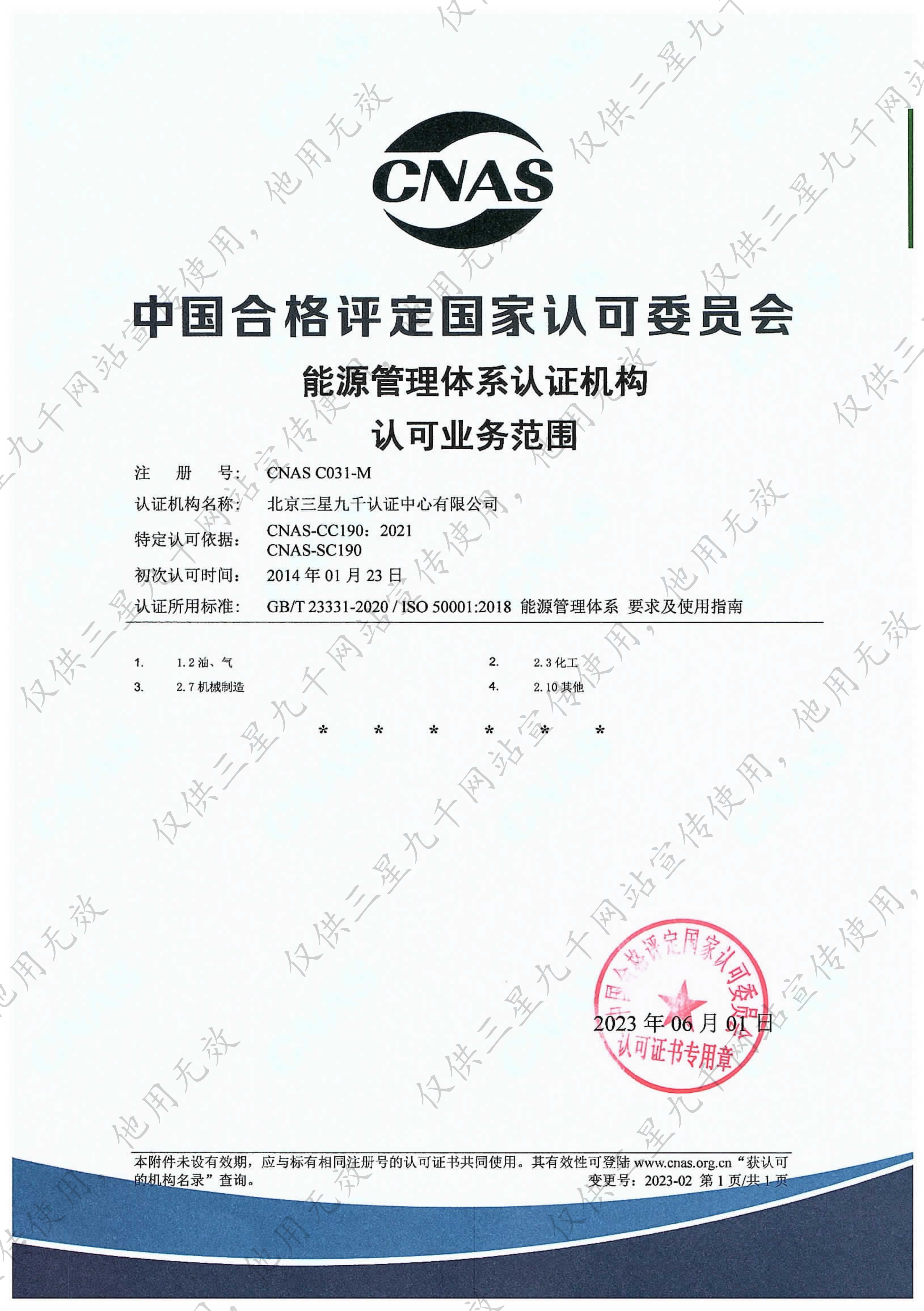 职业健康安全管理体系认证机构认可业务范围证书-2