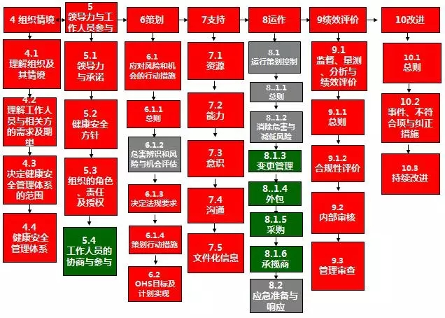 标准内容:这部分的改变并不大,主要对条款中的技术用词进行微调,并增加了一些note(注解)。例如在备受关注的条款5.4「工作人员的协商与参与」中新增了工作人员代表、非管理职工作人员的协商与参与以及无偿培训,三个注解,以增加各方引用标准的一致性。