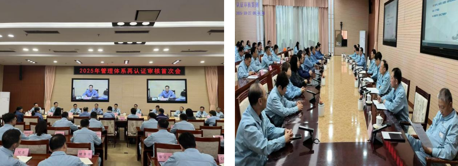 2025年10月27日至11月7日,北京三星九千认证中心有限公司(以下简称三星九千)对中国石油化工股份有限公司齐鲁分公司(以下简称齐鲁石化)的质量、环境、职业健康安全及能源一体化管理体系进行了再认证审核工作。末次会议于11月7日顺利召开,齐鲁石化党委书记李刚、总经理陈齐全等公司领导,及各相关部门负责人,与三星九千审核团队共同出席会议。
